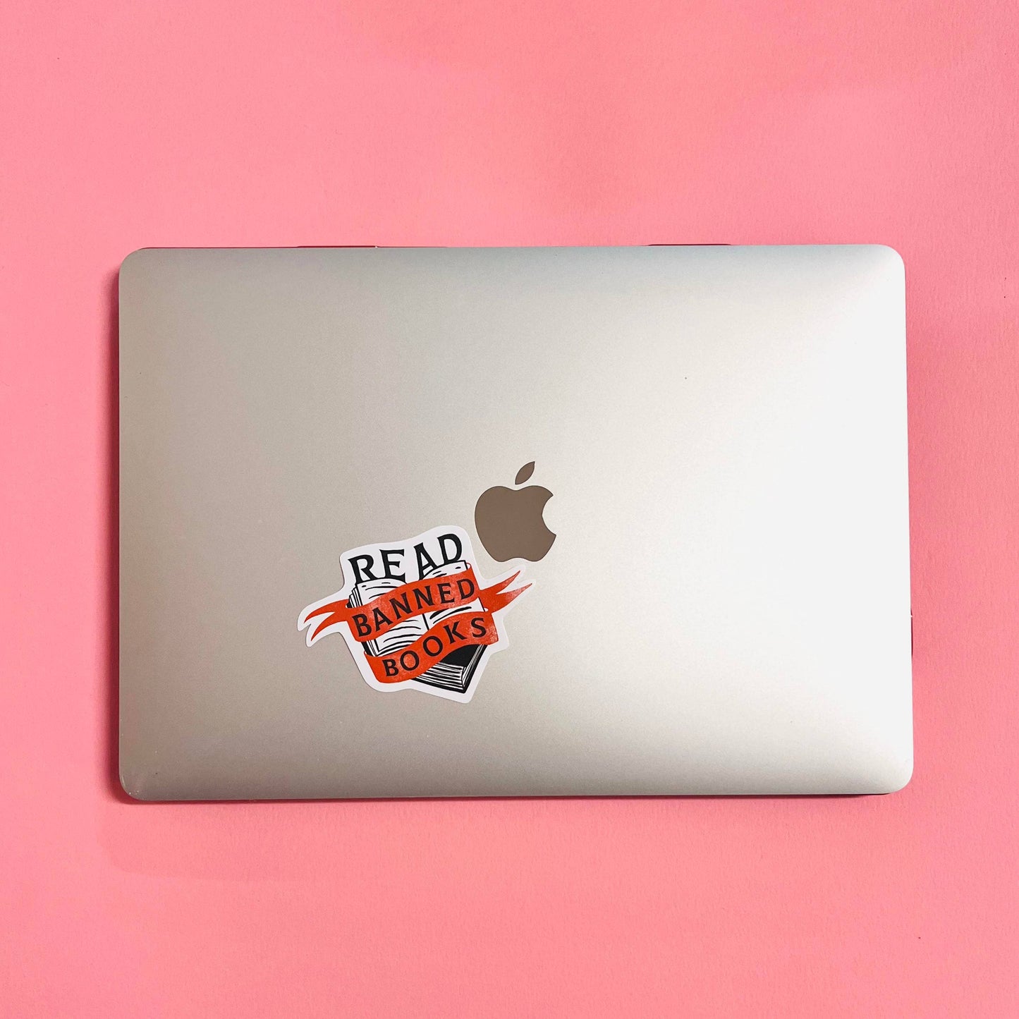 A large die cut vinyl sticker with our ever popular 'read banned books' motif. We're excited to have this large die-cut version of the design.