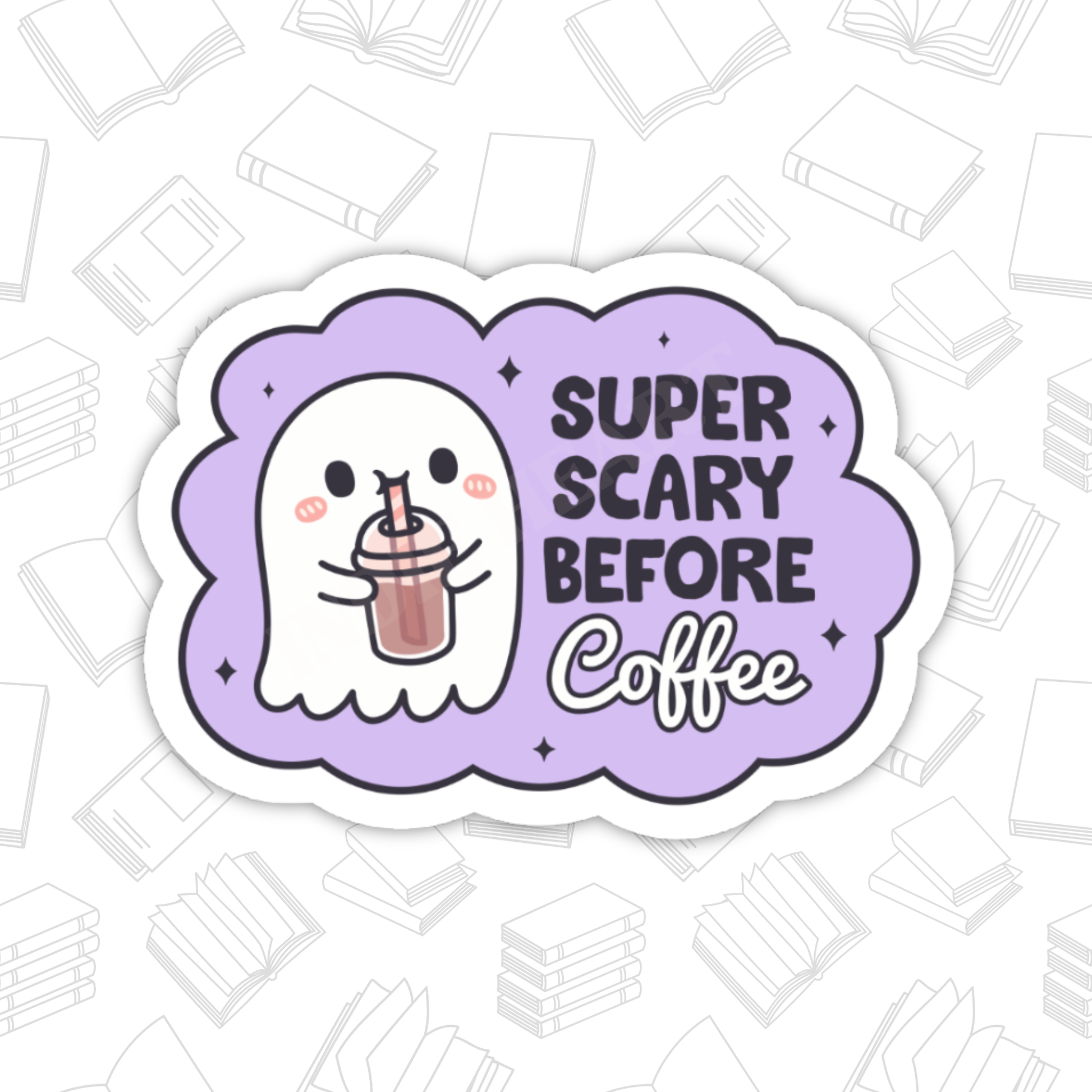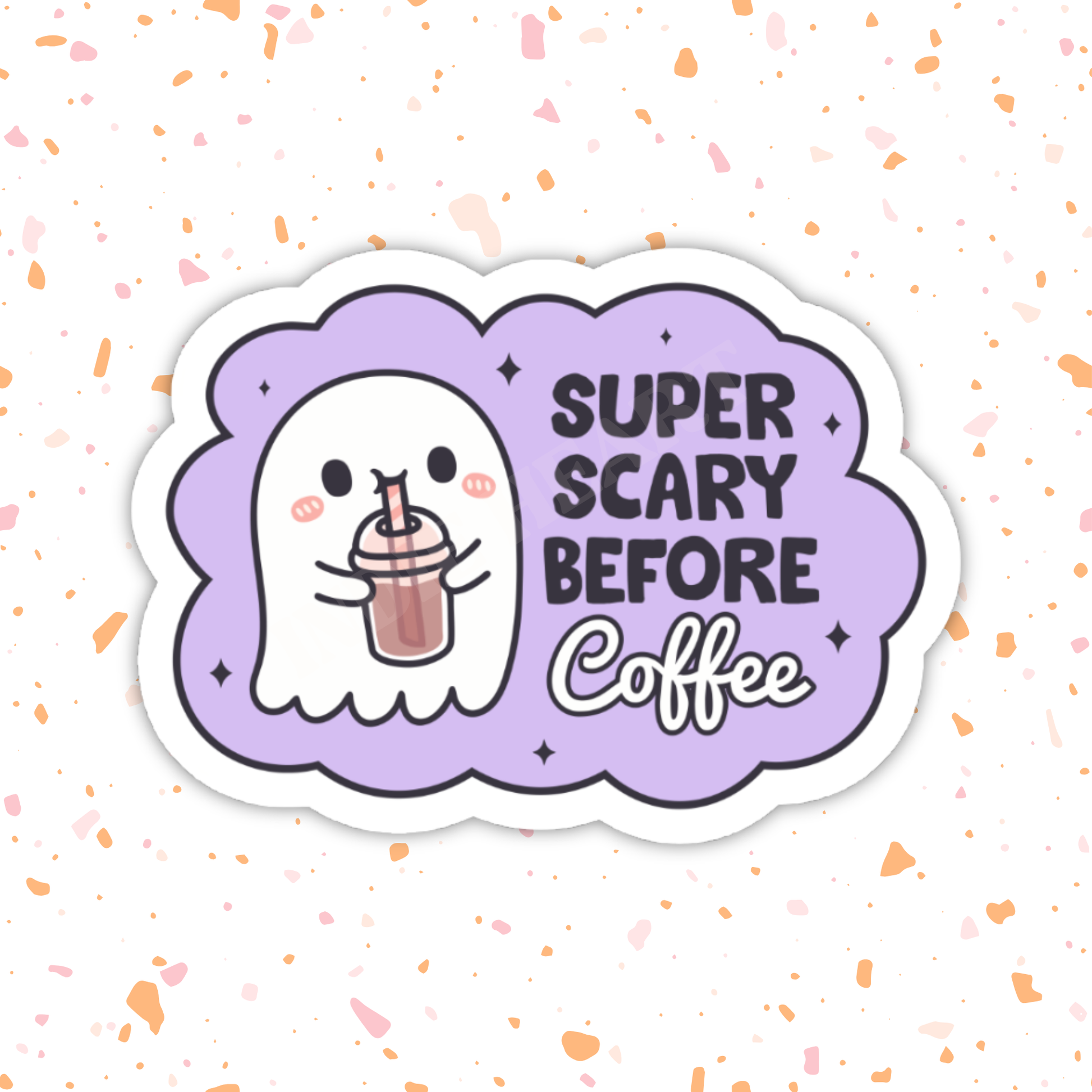 Scary Before Coffee Sticker – Cute Ghost, Glossy Vinyl